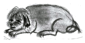 Immer dabei natürlich auch Gina, der blinde, von Räude zerfressenen Mops-Terrier aus dem Tierheim.